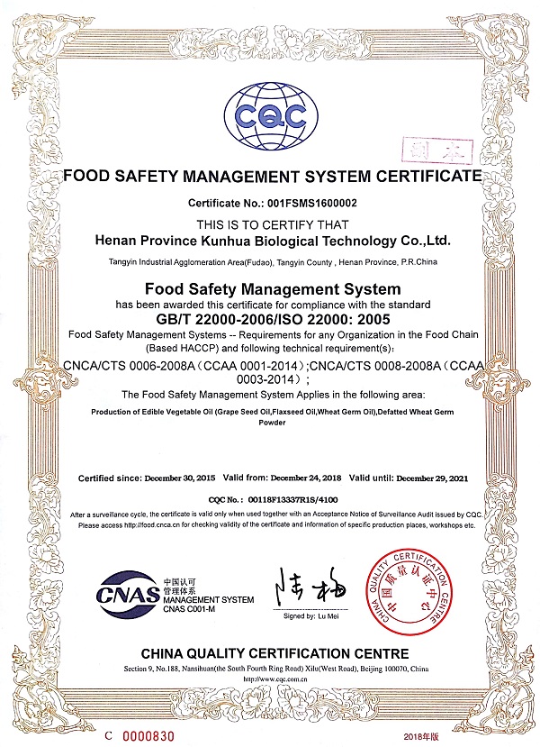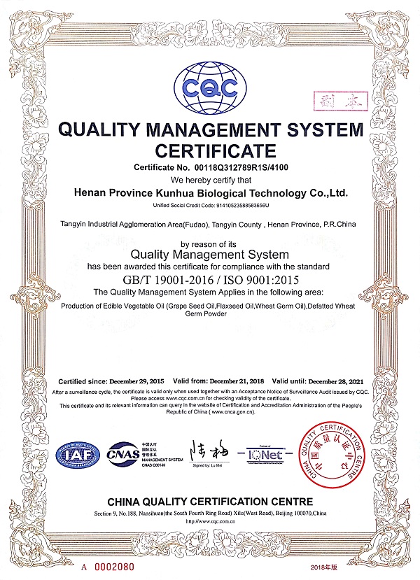KUNHUA BIOLOGICAL TECHNOLOGY CO., LTD engaged insubcritical extraction technology at low temperatureas well as natural wheat germ oil products development and utilization. We have modern high-tech production equipment and facilities and modern product research and development institutions and quality inspection center which passedQS certificationwith the self-management import and export rights.